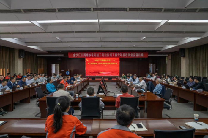 ▲白鶴灘水電站竣工階段樞紐工程專項(xiàng)驗(yàn)收質(zhì)量監(jiān)督會(huì)議召開 本文攝影:趙健
