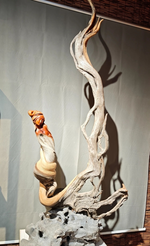 同樣“駐扎”牛扎坪花木城的,還有從事木雕工藝的董國周,“這個作品我個人很喜歡,有客人出價4500元,我沒舍得賣。做木雕是慢工出細活,產(chǎn)量雖低,但不愁賣。”他指著一個木雕說道。