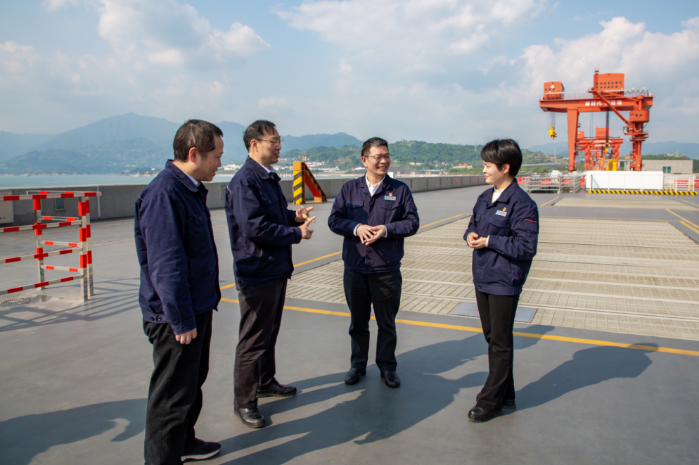 葛洲壩電廠黨委委員在三峽大壩壩頂討論交流。