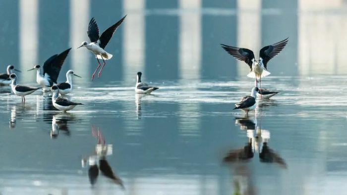 同樣,經過治理和修復的九江市城區水系“大動脈”十里河,碧波蕩漾、綠樹成蔭,曾經消失的黑翅長腳鷸也再次回歸。