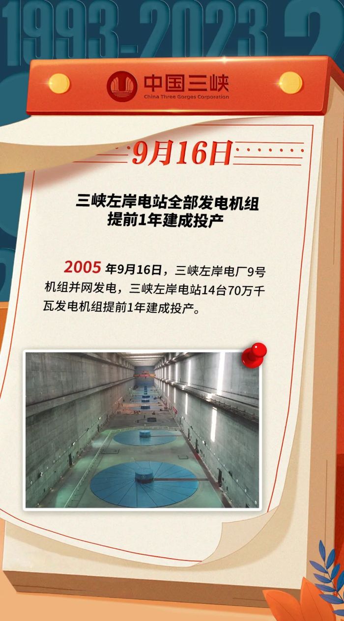 三峽 · 歷史上的今天丨(9月11日-9月17日)三峽左岸電站全部發(fā)電機(jī)組提前1年建成投產(chǎn)
