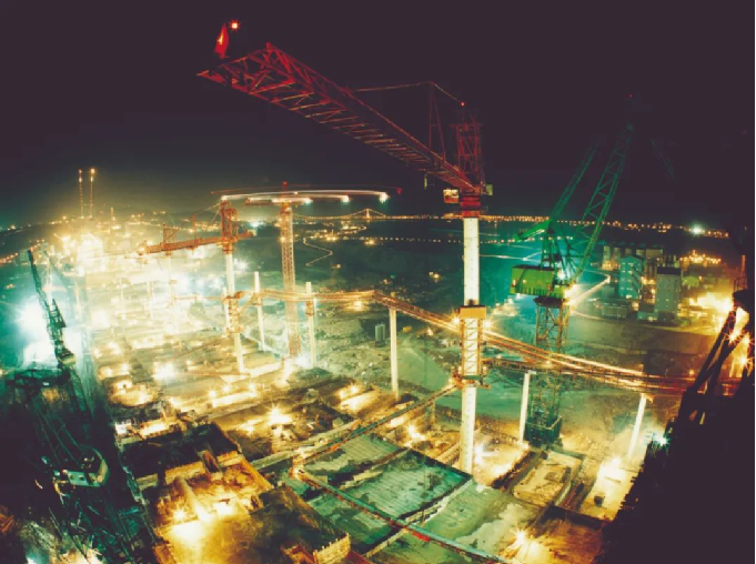 ▲?1999年除夕夜,三峽工程施工現(xiàn)場燈火通明,奮戰(zhàn)正酣。(資料圖片)