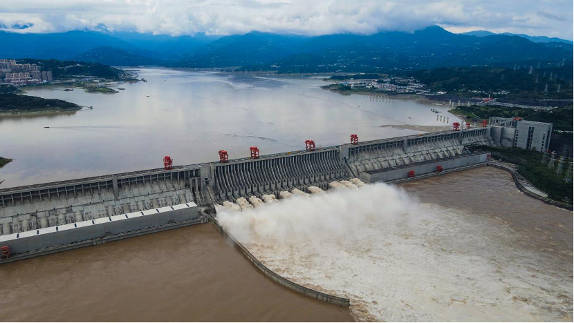 ▲?2020年8月20日,三峽樞紐迎來建庫以來最大洪峰。按照防汛調(diào)度指令,三峽樞紐開啟11個泄洪孔洞,出庫流量按49200立方米每秒下泄,削峰率達(dá)34.4%。?攝影:陳臣