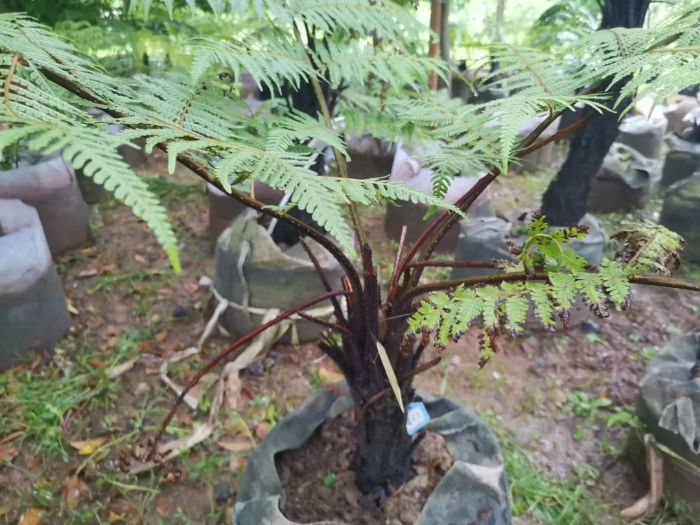 陰生桫欏是一種喬木狀的蕨類植物,有“蕨類植物之王”贊譽。它的莖干高度可達5米,直徑約8厘米,葉柄褐禾稈色至淡棕色,葉片三回羽狀深裂,生長于海拔350米-1000米林下溪邊陰濕處。由于其稀有性和特殊的生態(tài)價值,陰生桫欏被列為國家二級保護野生植物。