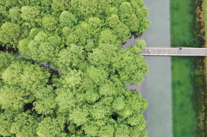 落羽杉林漸漸褪去冬日的火紅衣裳換上“綠裝”,倒映在清澈如鏡的水面上,“誰也不會想到此前這里污水橫流、一片臟亂。”市民劉燕笑著說道,“雖不住在附近,但在各類短視頻中經常刷到這個公園如今的美景,趁著周末就帶著孩子來打卡這個網紅點”。劉燕直言已被“種草”。